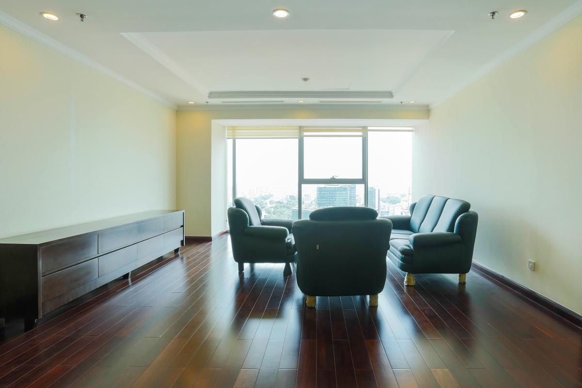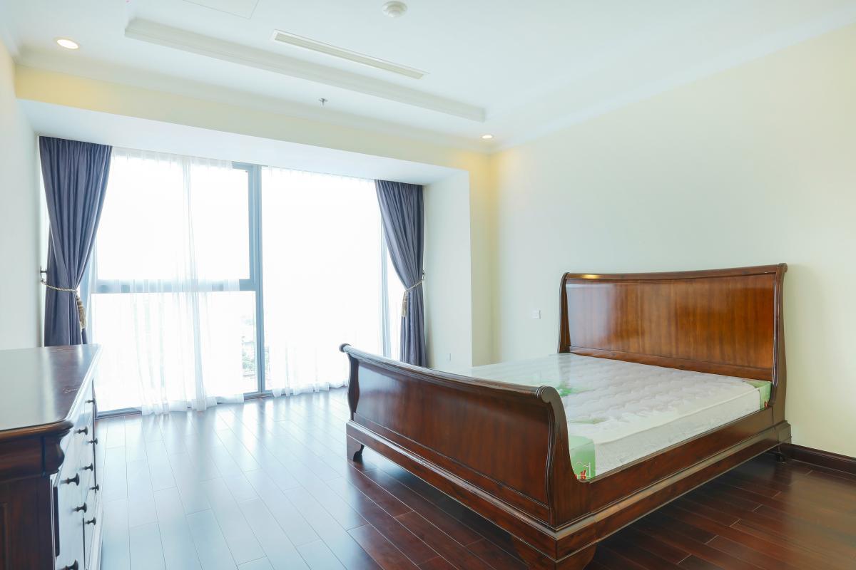 Cả ba phòng ngủ của căn hộ đều sở hữu diện tích lớn và được thiết kế hệ thống cửa kính lớn chiếm gần như trọn vẹn phần diện tích chiều rộng của gian phòng. Nhờ đó mà không gian ấm ấp của phòng ngủ với sàn gỗ và đồ nội thất với kiểu dáng truyền thống cao sang luôn được chiếu sáng tối ưu từ nguồn sáng tự nhiên cũng như giúp gia chủ có thể chiêm ngưỡng vẻ đẹp say đắm lòng người của thành phố Sài Gòn ở mọi thời điểm khác nhau.