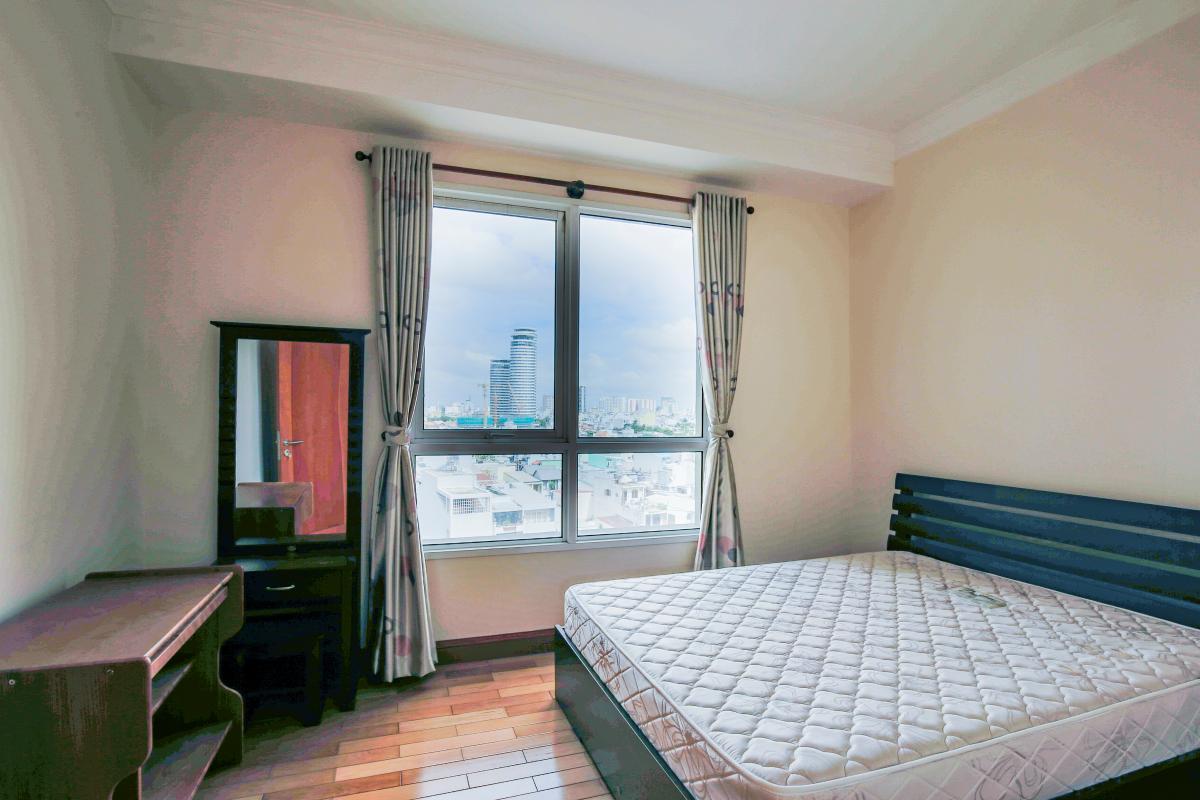 Hai phòng ngủ tuy đều được thiết kế mang đậm nét cổ điển Pháp với sàn lót nhưng vẫn có được sắc thái riêng. Phòng lớn dành cho ba mẹ mang một sắc vàng ấm áp với chiếc giường gỗ truyền thống, hệ thống cửa 6 cánh dẫn ra ban công có thể xếp gọn để đón nhận những tia nắng sớm mai hay đóng kín mang đến sự yên tĩnh cho những phút giây nghỉ ngơi. Phòng nhỏ hơn lại mang những sắc xanh cổ điển đậm chất Pháp.